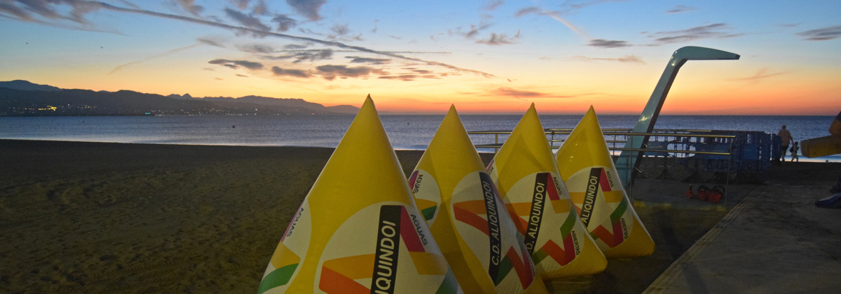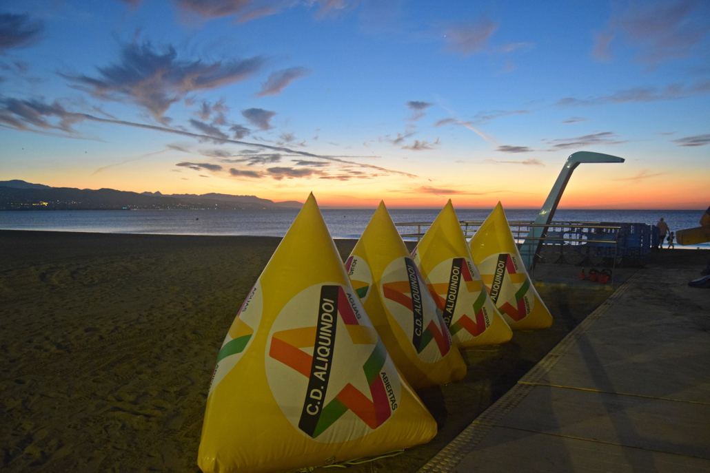 Este año ha venido con novedades: hemos adquirido un arco de meta personalizado y dos nuevas boyas para ayudar a la señalización del recorrido, siendo éste el principal caballo de batalla con el que tenemos que lidiar todos los años. A este respecto, hemos de decir que 5 boyas triangulares de 2 metros de altura en un recorrido de 1.500 m. sale a una boya cada 300 metros, lo que no se da en ninguna otra travesía que conozcamos. Aún así, seguiremos explorando nuevas posibilidades para ayudar a que los nadadores no se pierdan por el recorrido. Otra novedad ha sido que, en lugar de la típica camiseta -de las que todos tenemos ya demasiadas- hemos dado un poncho que consideramos muy útil para quienes practicamos la natación en aguas abiertas.
